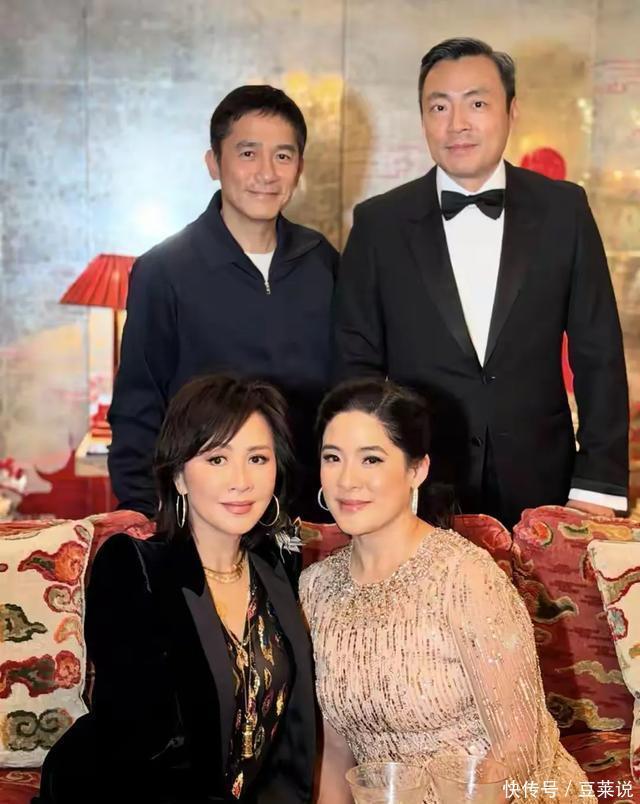 此番罕见现身的刘妈妈,气色非常不错,还薄施淡妆,红色羊绒衫也非常应景,胸前的翡翠菩萨吊坠非常显眼,一看就价值不菲。 与妈妈坐在一起的刘嘉玲,完全卸掉了生活中独当一面的铠甲,气场全无,只剩最柔软最真实的一面,也许那一刻她只有一个名字,就是女儿。 既然刘妈妈来到派对现场,自然也少不了刘嘉玲的弟弟和弟媳妇。 刘嘉玲与弟弟刘嘉勇感情很深,当年她拍戏赚的第一笔钱,就给了弟弟安家。